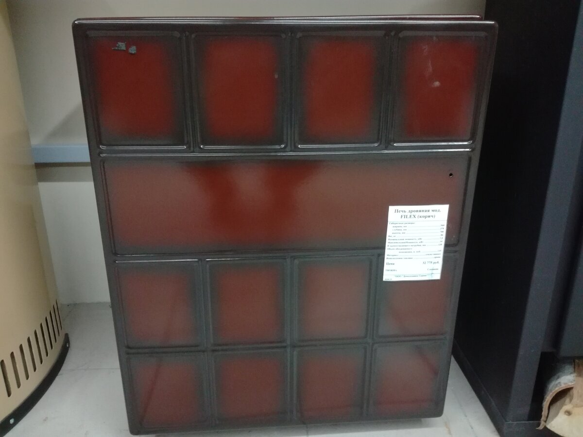 Любая Европейская печь, с которой мне так или иначе приходилось иметь дело, в разы лучше, чем печи, производимые в России. Не так давно я монтировал отопительную печь этого же производителя, статью можно почитать здесь, качество печи на высоком уровне, все элементы продуманы до мелочей, стекло не коптится, хорошая теплоотдача. В этой статье я хотел бы поделится с Вами одной очень необычной, в плане внешнего вида, отопительной печкой. Печь называется Filex, производит Словацкая компания Thorma. Внешний кожух выполнен из стали и покрыт термостойкой эмалью коричневого цвета. Размеры печи: За глухой дверкой (внешний кожух) находится сама печка, где есть две небольшие чугунные дверки. На каждой находятся регулировки для горения, которые имею 4 положения. Верхняя дверь служит для загрузки топлива, максимальная длина дров составляет 35 см. Топка печи футерована шамотным кирпичом. Нижняя дверь открывает доступ к зольному ящику и вращающемуся диску, на котором горят дрова. Этот диск можно поше