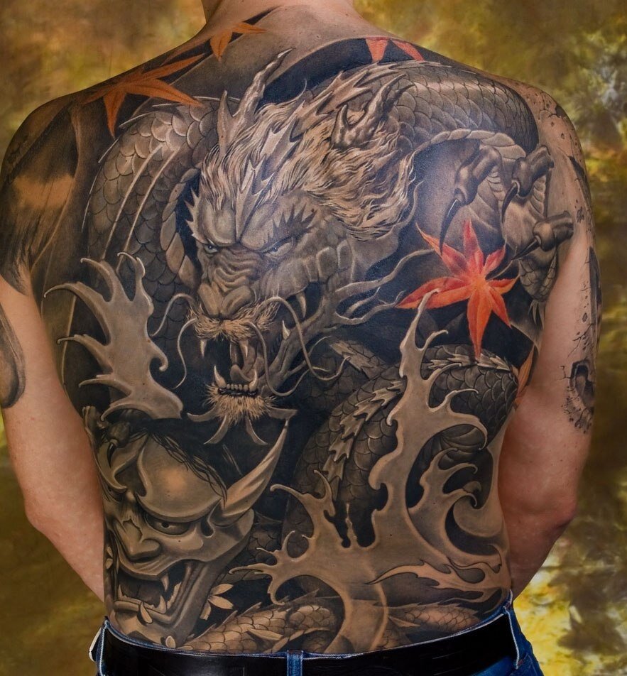 В восточной культуре дракона принято считать мужским символом, он отвечает за мужскую энергию Ян. Но в современном мире, его нельзя назвать чисто мужской тату.