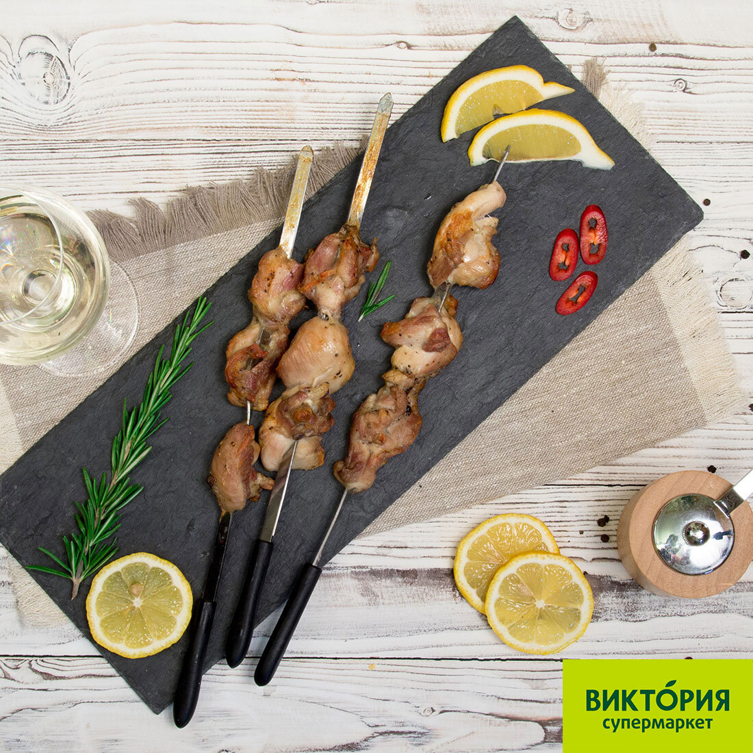 6 порций 809 ккал 30 минут Способ приготовления Шаг 1 Маринад: перемешать вино с горчицей, добавить соль, перец, розмарин, ягоды можжевельника и немного оливкового масла. Шаг 2 Подготовленную курицу разрезать на куски для шашлыка и замариновать на 8 часов. Шаг 3 Нанизать куски курицы на шампуры и выложить на мангал. Готовить, поливая маринадом. Оригинал рецепта размещен здесь: https://clck.ru/GYZG5