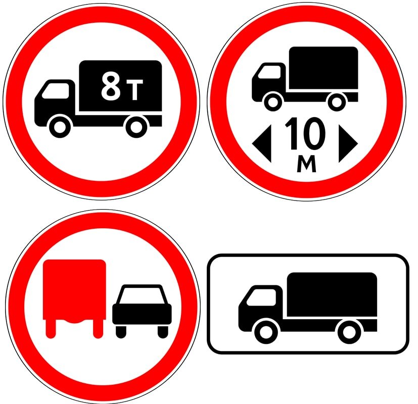 Большинство знаков, предназначенных для грузовиков, относятся именно к запрещающим. Внешний вид этой группы - круглый знак белого цвета с красной окантовкой. К таким знакам относятся: В центральной части знаков, ограничивающих какие-либо параметры транспортного средства, указывается количественные показатели: метры, тонны. Предписывающие знаки Для грузового транспорта к этой группе можно отнести только знаки рекомендуемого направления движения. Выглядят они как прямоугольники синего цвета с белой маркировкой в виде изображения грузового автомобиля и указательной стрелкой. Также существует знак, регламентирующий направление движения транспорта с опасным грузом - белый прямоугольник с оранжевым квадратом и направляющей стрелкой. Подробнее на нашем сайте: zakon-auto.ru