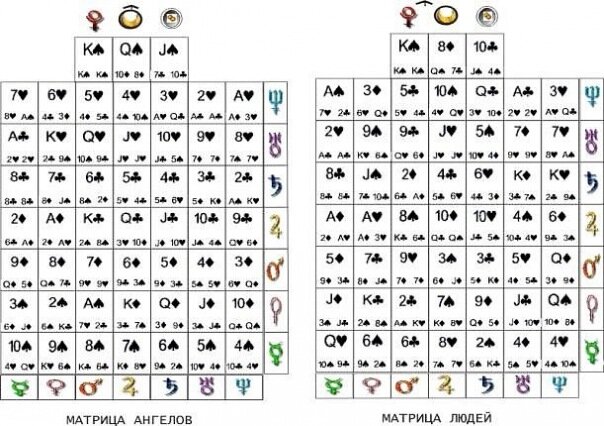 По данной матрице можно определить наперёд, что случиться с нами в определенный момент жизни и во всех сферах. Когда лучше вступить в брак,сменить работу,расширить бизнес,путешествовать и многое другое. Увидеть, какие уроки преподносит нам судьба и решить следовать им или нет. Чтобы определить свой жизненный расклад нужно найти свою Карту рождения и идти от неё слева направо снизу вверх. Карты будут означать периоды жизни,по очередности- Меркурий, Венера,Марс,Юпитер,Сатурн,Уран,Нептун,Плутон,Плутон- результат. И карта,стоящая справа от Карты рождения- Карта Луны.