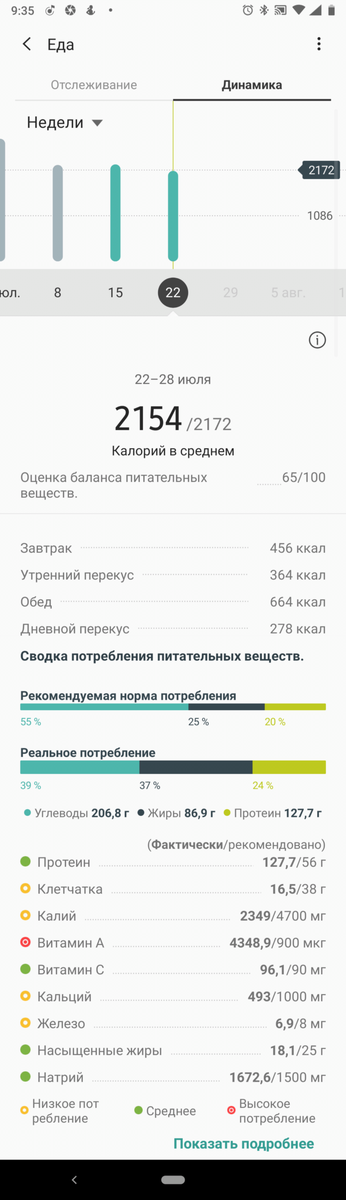 Потребление ккал: больше на 65.