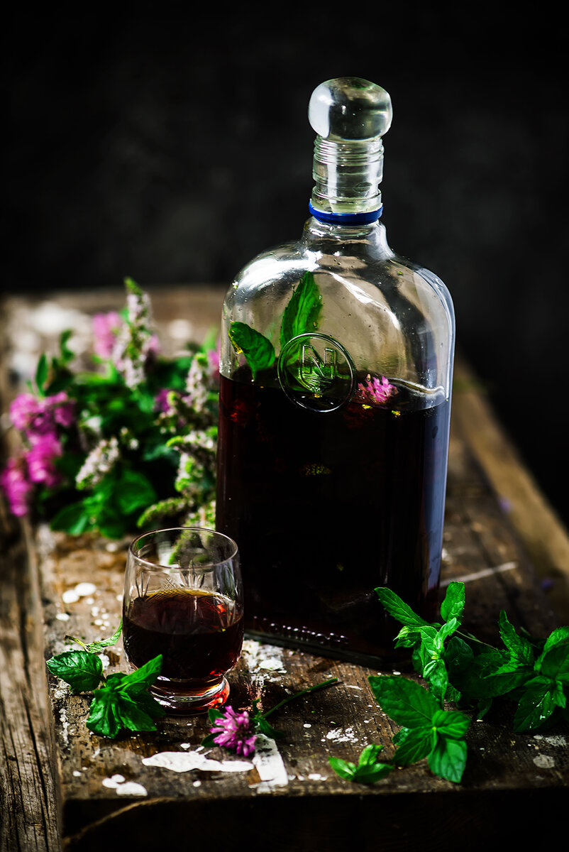 - Затем процедить, перелить в бутылку, добавив при этом веточку мяты и клевера.