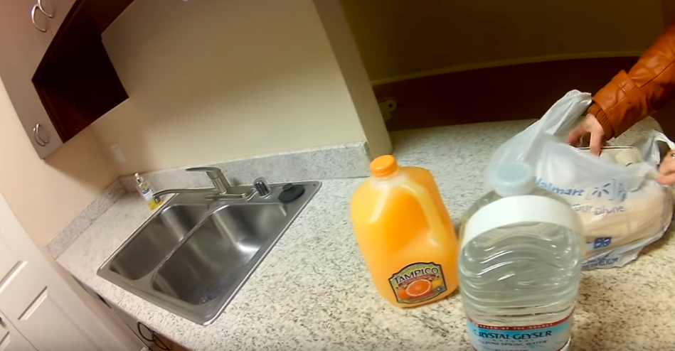 Сок апельсиновый, 1 галлон или 3,78 литра. Цена 1,5$. Чистая вода, 1 галлон, цена 0,94$ Яйца, 12 штук. Цена 1,18 $ Хлеб, 320 грамм, можно даже назвать багетом. От нашего внешне не сильно отличается, какой на вкус еще не знаем. Цена 1$ Что то типа нашего доширака, цена 0,20$ Консерва с тунцом. Цена 0,94$ Сыр в упаковке, внутри 16 слайсов. Один из самых дешевых. Цена 1,25 $. И сосиски 12 штук, опять же одни из самых дешевых. Сделаны из свинины и курицы. Цена 0,98$ . Вот такие цены на самые необходимые продукты. Мы их купили в спешке, ориентируясь исключительно по цене. Времени выбирать у нас не было, а выбор в Волмарте уж поверьте просто огромный, мы конечно забыли купить зубные щетки и пасту, мыльнорыльные принадлежн
