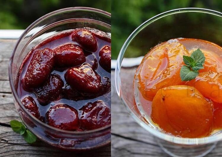 1 кг -клубники 800 гр - сахара. Обработанную клубнику с вечера засыпать сахаром и оставить на ночь,чтобы клубника пустила сок. Варить\уваривать варенье на самом слабом огне три дня утро\вечер по 5-7 мин. не мешать! Чем больше дней варите-гуще сироп. *Я варю три дня\5-6 раз. Закатать в стерильные банки. ⠀ 3 кг - уже обработанных абрикос (мягкие не пойдут,должны быть тверденькие). 1,5 кг - сахара. Абрикосы помыть, вытащить косточки, положить в кастрюлю с толстым дном. Пересыпать сахаром, оставить на ночь пока абрикоса не пустит сок!!! Варить абрикосу три дня утром и вечером по 5-10 минут на самом слабом огне НЕ МЕШАТЬ!!!!!!!, чтобы еле-еле кипела. Закрывать в стерилизованные банки. Оооочень вкусно, абрикосы все целые, в меру сладко и очень ароматно!!! Всего вам самого вкусного и удачных заготовок. Угощайтесь!