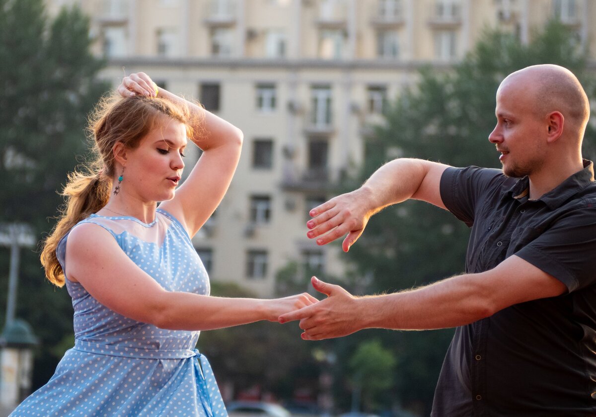 Ежедневно на Пушкинской набережной, при хорошей погоде можно не только наблюдать страстные танцы, но и присоединиться к участникам. Очень дружественная и приятная атмосфера царит вокруг, приглашённые диджеи крутят диски, а в ритме танца кружатся мужчины и женщины всех возрастов. Ниже, подборка фото и ответы на самые часто задаваемые вопросы. Где? Пушкинская набережная Москва-реки (у Андреевского моста)