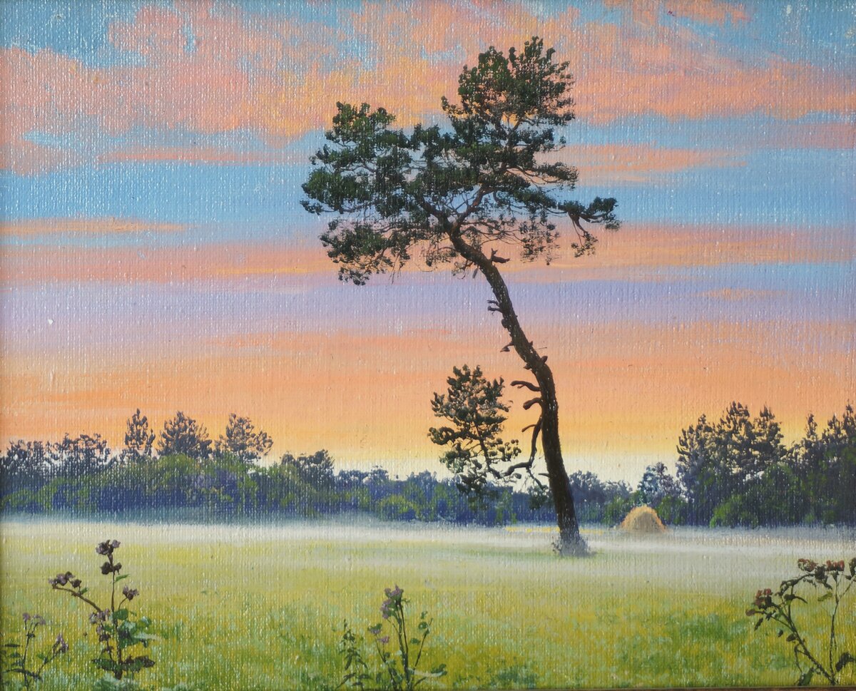 Художник Дмитрий Щеглов. «Закат» 20х24 хм – 17 000 р Художник Дмитрий Щеглов говорит, что нарисовал эту картину недалеко от Перевоза, около реки Уфа, как раз там, где проходит граница между Челябинской областью и Республикой Башкортостан. Я примерно в тех же местах ищу хариуса, поэтому этот пейзаж мне знаком. Характерный знак этих мест - одиноко стоящие лиственницы. Наверное, в этих местах когда-то были древние лиственные леса. Ведь наша лиственница - это уникальное дерево. Я видел лиственницы, например, на Алтае. Ну, так вот, совсем другое. Наши лиственницы, во всяком случае, которые встречаются в пойме реки, они какие-то художественные, что ли. Такие деревья встречаются на картинах китайских художников. Там-то понятно, восток, дело тонкое, и не могло искусство медитации появиться где-то в другом месте, как не в тех местах, где есть пейзажи, словно специально созданные именно для этого способа расширения сознания. Восток, дело тонкое… Мне кажется, что наши лиственницы, особенно сто