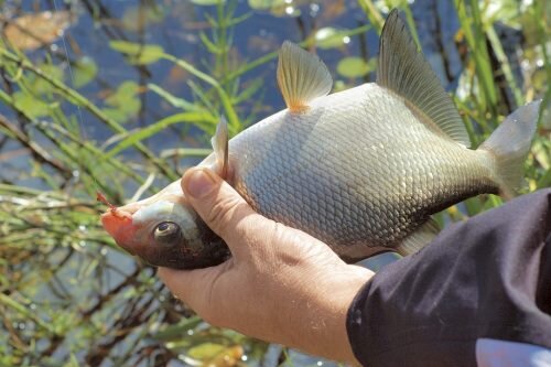Ловля леща в августе на поплавочную удочку чаще всего ведётся в прибрежной зоне в местах со спокойным течением. Когда подходящее место для ловли будет найдено, рыболов готовит прикормку и выполняет стартовый закорм. Теперь нужно будет подождать пока к прикормленному месту подойдёт рыба. В зависимости от ингредиентов, входящих в состав прикормки время ожидания может составлять от 10 до 30 минут. После этого выставляем нужную глубину ловли, насаживает опарыша или другую наживку на крючок и забрасываем в прикормленное место. Как правило, оснастка с крючком должна лежать на дне. Дальнейших активных действий не требуется, остаётся только ждать поклёвки. Ловля леща в августе на поплавочную удочку в местах с течением ведётся в проводку. В данном случае нужно забросить оснастку в прикормленное место и выдержать паузу, дав ей опуститься на дно. После паузы делаем короткое движение удилищем вверх, подтягивая тем самым наживку к себе. После паузы, коротким движением удилища вверх подтягиваете
