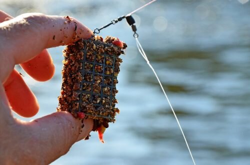 В первую очередь на выбранном участке водоёма нужно «простучать» дно и найти ямы, бровки и другие неровности. В большинстве случаев для поиска перспективного участка используется маркерное грузило с поплавком. Обнаружив перспективный участок для ловли, крепим кормушку к оснастке, наполняем её прикормочной смесью и выполняем заброс в это место. После успешного заброса длину лески для точных забросов в тоже место нужно зафиксировать в стопоре, расположенном на шпуле катушки. Затем рыболов делает подсечку, чтобы освободить остатки прикормки из кормушки и извлекает оснастку из воды. Закончив со стартовым закормом, крепят поводок с крючком и кормушку меньшего размера. на крючок насаживают наживку или насадку, наполняют кормушку прикормкой и забрасывают в прикормленное место. Леска должна провиснуть после погружения кормушки на дно. Теперь устанавливаем удилище на подставку и приводим леску в натянутое состояние. Обратите внимание, что вершинка бланка должна находится в полусогнутом поло