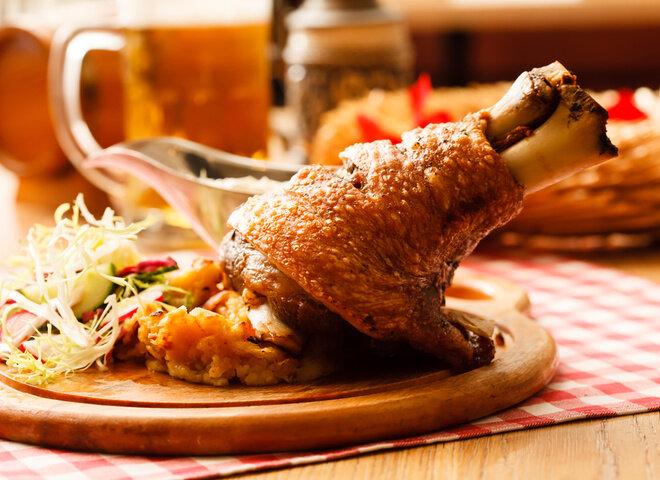 - При желании можно в том же бульоне, где готовилась рулька, сварить картофель и подать в качестве гарнира. И не забудь про пиво!