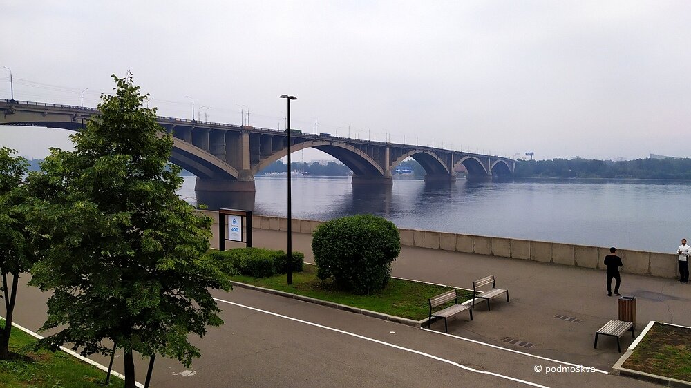 Коммунальный мост через Енисей в Красноярске — это одна из визитных карточек города. Этот мост знаком практически каждому, ведь он изображен на современной десятирублевой купюре, выпущенной в 1997 году и вошедшей в оборот в 1998 году. И хоть эта банкнота уже почти не используется, ее сменили десятирублевые монеты, облик Красноярска в первую очередь ассоциируется именно с ним. Да, еще на 10-рублевке изображена часовня и плотина, но о них чуть позже, ведь и около них я побывала. Коммунальный автомобильно-пешеходный мост — уникальное инженерное сооружение, построенный в 1961 году в духе знаменитого сталинского ампира. Мое знакомство с Красноярском началось ранним утром сразу после прилета и заселения в гостиницу. Разве можно было отправиться спать, когда в паре шагов такая красота? Ширина Коммунального моста составляет 23,4 м, высота — 26 м. Общая длина мостового перехода с подходами и дамбой — 2 300 м. Он соединяет Центральный и Свердловский районы города. На левом берегу Енисея мост