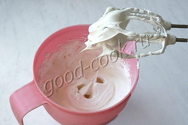 В итоге должно получиться крепкое безе, образующие не падающие острые пики.