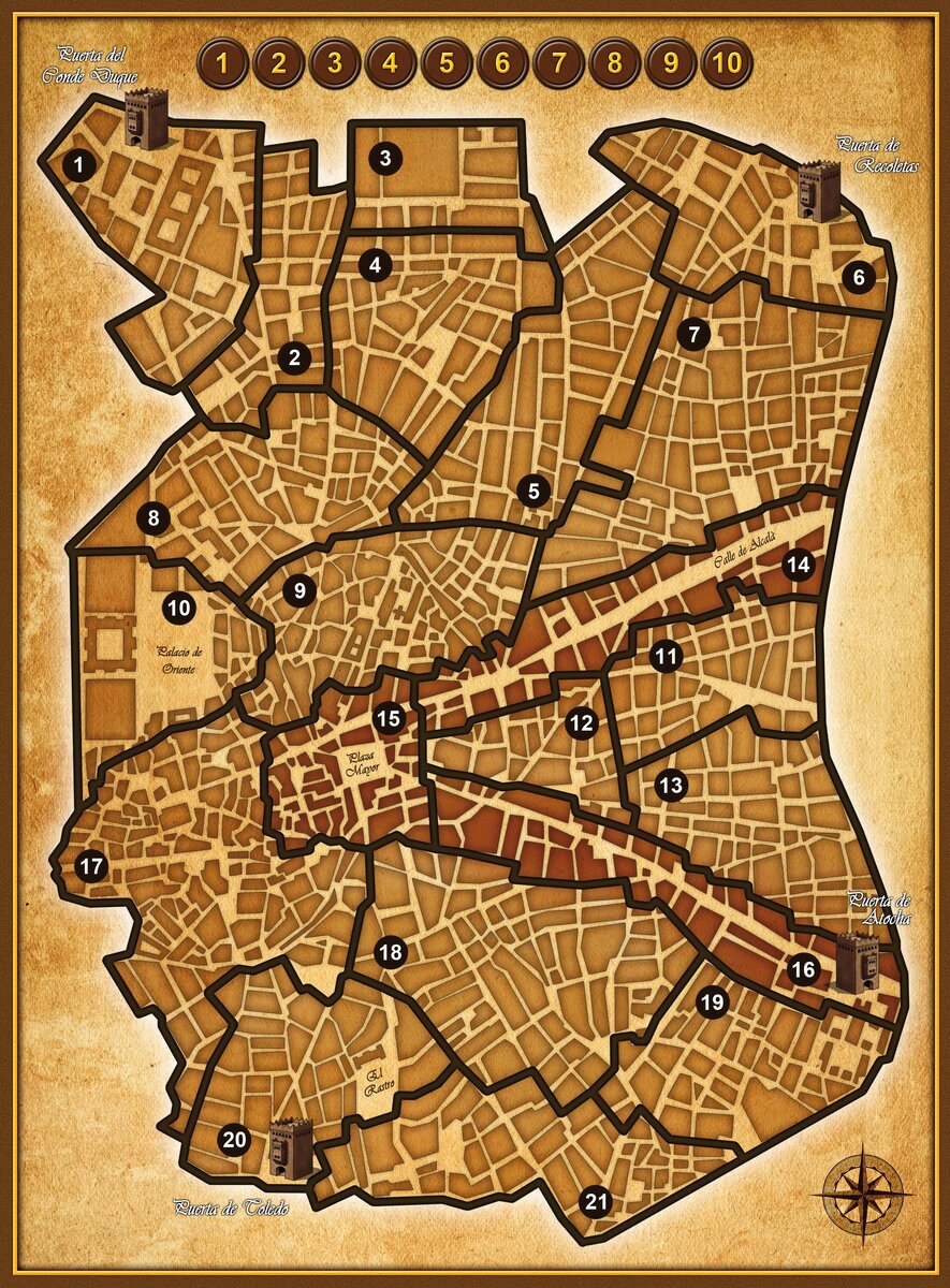 ПЕРВОНАЧАЛЬНАЯ РАССТАНОВКА Поместите маркер хода на 1 на дорожке ходов. Отложите в сторону 1 синий и 2 красных юнита (могут вступить в игру позже, в зависимости от пришедших карт). Играющий за Францию: § Установите 1 юнита на поле 10, и по 2 юнита на полях 1, 6, 16, 20. § Установите по 5 юнитов вне города рядом с полями 1, 6, 16, 20. § Возьмите карту Artillery либо карту Mariscal Murat для первого хода, перетасуйте оставшуюся колоду. Играющий за Испанию: § Установите по 1 юниту на полях 4, 8, 9, 10, 12, 15, 17, 20. § Возьмите карту Jose Blas Molina y Soriano для первого хода, перетасуйте оставшуюся колоду. ПОСЛЕДОВАТЕЛЬНОСТЬ ХОДА Фаза подготовки Игроки могут взять одну карту из своих колод (кроме первого хода). Игроки не могут брать карту из колоды, если у них на руках на 3 карты больше, чем у оппонента. Пример: Испания – 5/Франция – 1, Испания не может взять карту; Испания – 4/Франция – 1, Испания может взять карту, если Франция делает то же. Фаза приказов Каж