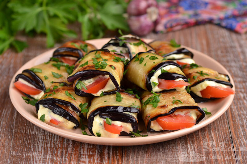 Потрясающе ароматные, сытные и вкусные рулетики из обжаренных на сковороде баклажанов и свежего помидора. Соус к ним делаю на основе майонеза с добавлением натертого твердого сыра, измельченного чеснока, петрушки и молотого кориандра. Очень ароматно!!! Получается сытная и яркая закуска из простых продуктов, которая отлично подойдет для праздничного стола. Просто в приготовлении, красиво и очень-очень вкусно!!! Порции 13 шт. Время подготовки 30 минут Время приготовления 10 минут Ингредиенты Инструкции 1. Для рулетиков отлично подойдут баклажаны длиной около 20 см. Промываем их, отрезаем небольшие части с 2 сторон и нарезаем на длинные пластины толщиной около 8 мм. У меня получилось 13 штук. Если пластины будут слишком толстые, то рулетики не будут держать форму. Если их нарезать тонко, то при обжаривании они станут слишком мягкими и при формировании рулетиков будут рваться. 2. Нарезанные пластины баклажанов посыпаем солью. В сковороде разогреваем масло (2 ст. л.) и выкладыв