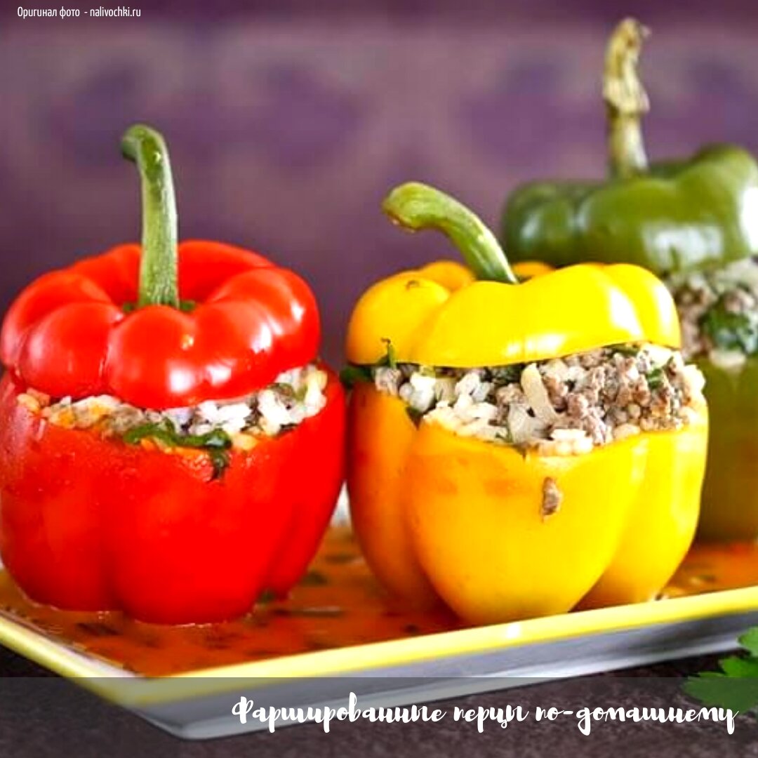 Сейчас самый сезон сладких перцев. Не упускаем возможность порадовать близких таким уютным и вкусным блюдом как перчики, фаршированные рисом и мясным фаршем. Ингредиенты: 10 штук не очень крупных сладких перцев; 1 кг мясного фарша; 100 граммов пропаренного риса; 1 крупная морковка; 1 большая луковица; 1 большой сладкий помидор; 4 зубчика чеснока; пучок петрушки; ароматное подсолнечное масло; соль, перец - по вкусу Приготовление: 1. Подготавливаем перцы к фаршировке. Для этого аккуратно срезаем макушечку и вычищаем семена. Промываем. Срезанные макушечки не выбрасываем, снимаем с них мякоть перца и мелко рубим. 2. Промываем рис. Лучше брать пропаренный, он более рассыпчатый. Или рис для ризотто - начинка будет более шелковистой текстуры. 3. Готовим зажарку. На разогретой сковородке обжариваем до полуготовности мелко нарезанные - лук, морковь, помидор, мякоть с перечных макушек и чеснок. Добавляем соль и перец по вкусу. 4. Отделяем половину зажарки в большую кастрюлю, в которой планиру