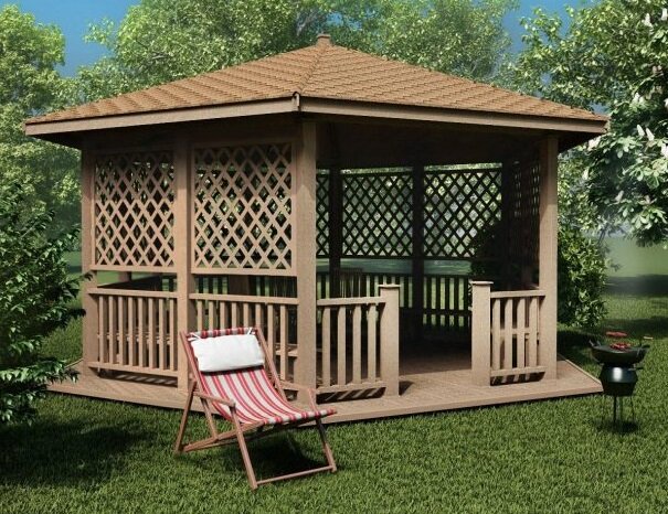 Сегодня практически на каждом участке возле частного дома или дачи можно увидеть беседку. В жаркие дни здесь так приятно посидеть в тени, отдохнуть, накрыть стол для гостей или семьи. Конечно, готовый вариант можно купить, в наше время продаются беседки, крытые тентом, просто большие пляжные зонты, но всегда приятнее выстроить что-то по своему проекту, своими руками. Наша дальнейшая речь пойдет о том, как сделать беседку на даче самостоятельно. Чтобы постройка прослужила дольше и не деформировалась, необходимо беседку поставить на фундамент, с него и начнем. Все зависит от грунта. Если почвы достаточно зыбкие, или часто вспучиваются, то фундамент должен быть достаточно мощным, можно беседку поставить на железобетонную плиту, или проложить ленточный. В любом другом случае хватить всего-то нескольких столбиков из бетона, от 4-х - расставленных по углам, до десятка. Они вкапываются в землю, хорошо утрамбовываются, можно для дополнительной прочности залить их дополнительно бетоном. Высота