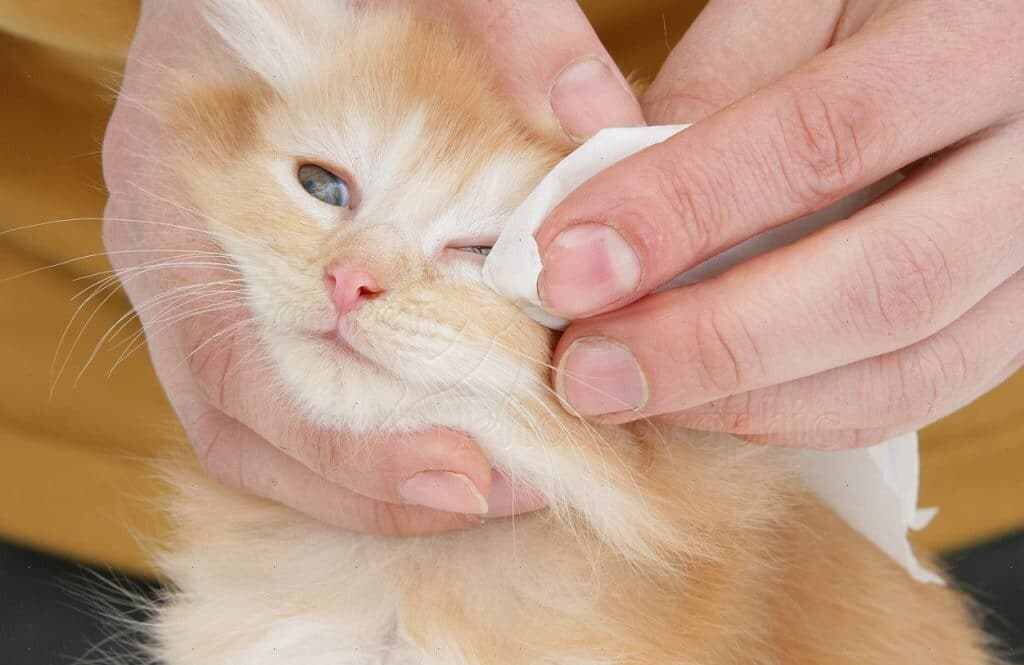 Несмотря на то, что кошки – самые чистоплотные животные, и немалую часть своего времени они тратят на вылизывание, но и им тоже может потребоваться помощь человека, например, в очищении глаз. Слипшиеся веки у представителей семейства кошачьих, особенно в детском возрасте, встречаются не так уж редко. Как правильно провести эту процедуру, и чем воспользоваться – все это нужно знать любому владельцу кошки. Почему закисают глаза у кошек Почти каждый владелец кошки, рано или поздно, сталкивается с тем, что его любимый питомец не может открыть глаза Одна из наиболее распространенных причин закисления кошачьих глаз – конъюнктивит. Этим заболеванием страдают и люди, и животные. Сначала возникают слезы и слизь, а потом начинаются воспаления и закисление. Проблемы могут начаться и в результате травмы роговицы, тогда еще и глаз может стать красным. Аллергическая реакция на продукты или что-либо во внешнем окружении тоже может дать подобный эффект. Еще одной причиной может стать заражение кишечны
