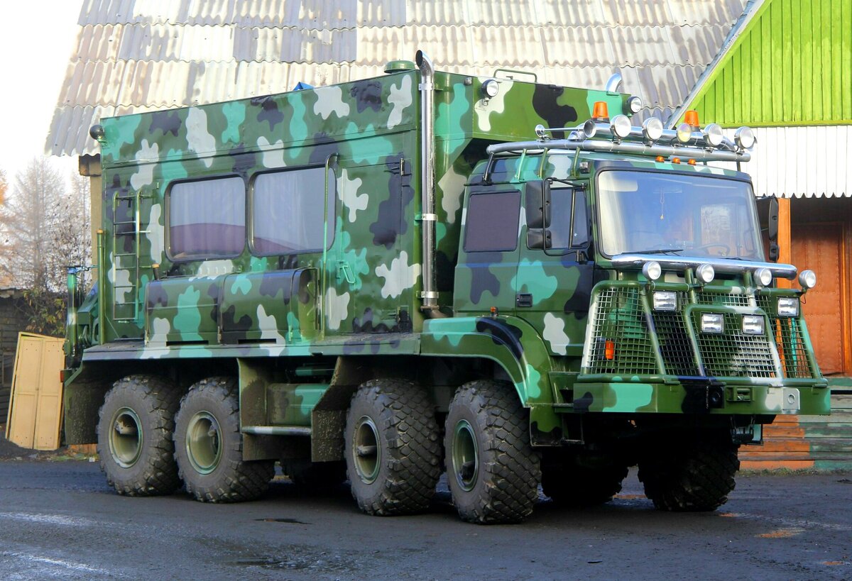 Вот что можно сделать из восьмиколесного полноприводного Урала. Кто-то превратил его в комфортабельный дом на колесах с огромным жилым модулем и мощной защитой кабины спереди. А кто сможет правильно назвать количество фонарей, установленных на кабине?
