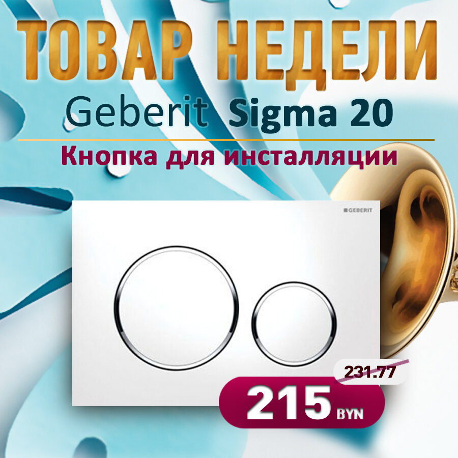 На этой неделе для Вас предоставляется керамогранит итальянского производителя: Кнопка для инсталляции Geberit Sigma 20 Разработчики фирмы Geberit создали клавиши смыва для инсталляции Геберит Сигма максимально функциональными и удобными. Для этой продукции присущи индивидуальность, благовидный дизайн, компактность, бескомпромиссная стильность и минимализм. Подробнее на сайте: www.vsevdom.by