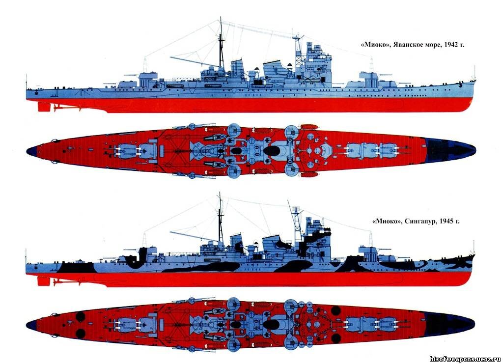 «Мёко» 妙高型重巡洋艦 заложен 25 октября 1924,спущен на воду 16 апреля 1927,вступил в строй 31 июля 1929. Затоплен 8 июля 1946 в Малаккском проливе