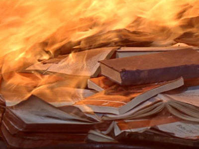 Что заставляет сжигать книги? Скорее всего, это страх перед словом, перед тем, что оно несёт, страх того, чего не понимаешь. 1) М.Булгаков «Мастер и Маргарита» В романе Мастер в порыве безотчетного страха, вызванного критическими статьями, сжигает свой роман. Возможно, в этой зловещей сцене сожжения тетрадей отразились собственные впечатления писателя, когда он в 1930 г. жёг рукопись почти написанного романа. Это была рукопись первой редакции «Мастера и Маргариты», хоть тогда такого названия роман не имел, и упоминаний ни о Мастере, ни о Маргарите в нем ещё не было. «Я вынул из ящика стола тяжелые списки романа и черновые тетради и начал их жечь. Это страшно трудно делать, потому что исписанная бумага горит неохотно. Ломая ногти, я раздирал тетради, стоймя вкладывал их между поленьями и кочергой трепал листы. Пепел по временам одолевал меня, душил пламя, но я боролся с ним, и роман, упорно сопротивляясь, все же погибал. Знакомые слова мелькали передо мной, желтизна неудержимо поднимал