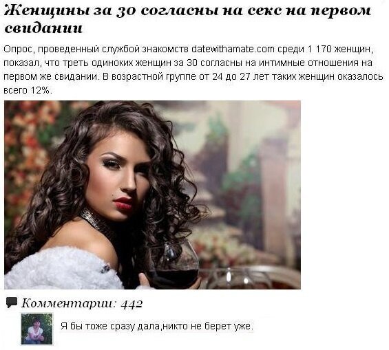 Если в отношениях с мужчинами прекрасная половина обычно не откровенничает, то в сети женщины вываливают абсолютно все. Осторожно, может быть в этой подборке вы найдете месседж своей второй половинки. 1. Занимательная статистика 2. Что тут таить, интимная сфера семейной жизни - это самая излюбленная тема на женских формах 3. 4. 5. 6. 7. Некоторые вопросы настолько откровенны, что не знаешь куда от всего это деться 8. 9. Боже, они ведь все это серьезно.... 10.