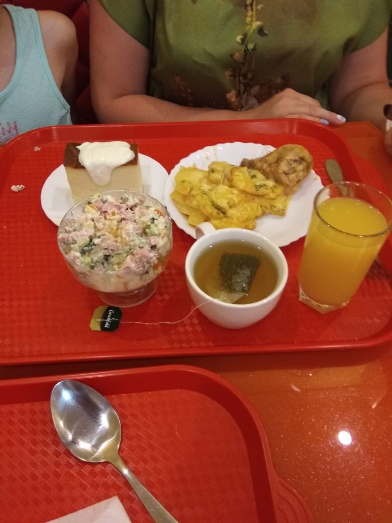 На отдыхе я и моя семья обедала в столовых. Хочу с вами поделиться сколько же выходит покушать в столовой . Отдыхали мы в с. Дивноморское под Геленджиком. Тем кто собирается скажу что проблем где покушать нет, в поселке очень много столовых и примерно цены одинаковые плюс-минус 10-20 рублей, единственное наверное те которые ближе к пляжу будут чуть дороже. Я выбрал для себя три места где мы и питались не кафе, а именно столовые с самообслуживанием. С графиком работы тоже все в порядке, раньше 20.00 не закрываются, некоторые работают до 23.00, так что голодным при всем желании не оставался. Делюсь ценами на основные блюда: Борщ 60-80 рублей Солянка- 90-110 рублей Суп куриная лапша 70 рублей Гречка 40 рублей Рис 50 рублей Картошка фри 50 рублей Плов 130 рублей Поджарка свиная 130 рублей Гуляш 90 рублей Котлета 80 рублей Сок 30 рублей Компот 25 рублей Мне с женой и ребенком обед выходит в среднем от 650 рублей. Все очень вкусно и по домашнему. Я не понимаю тех людей которые едут