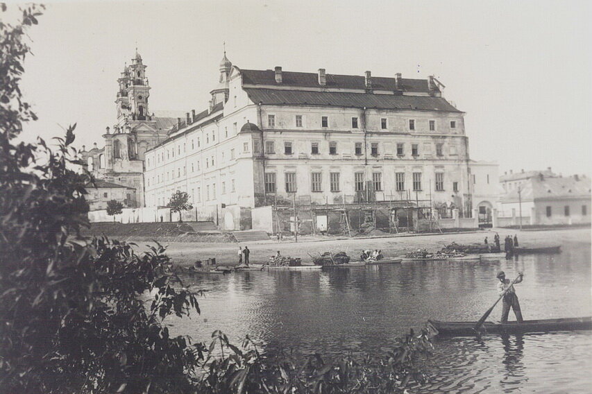 А перейдя на площадь Ленина, издалека можно увидеть величественный иезуитский коллегиум XVII века. Ансамбль иезуитского монастыря строили долго, с 1630 по 1670 годы. Во времена ВКЛ коллегиум был известен как крупный образовательный центр.