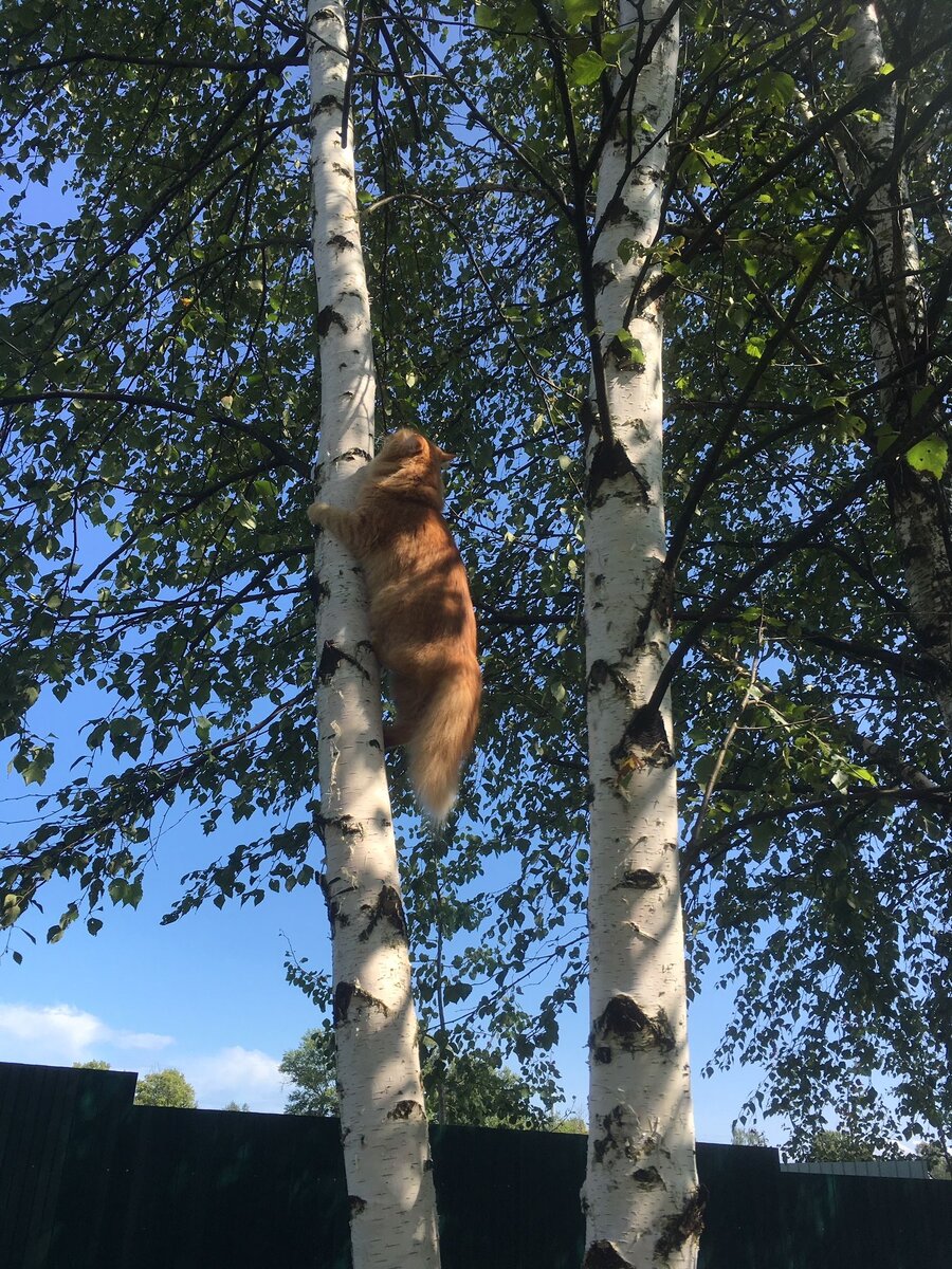 Наблюдать и фотографировать, сам слезет:) Разбежался с дальнего конца участка. И полез-полез наверх. Нет, его никто туда не загонял, он ничего не пугался, даже не гнался ни за кем. Просто взял, разбежался и полез! А потом прочухался - чего это я? Но слез сам! Еще про котика? Рыжая морда на даче Оставайтесь со мной, у меня есть котик!