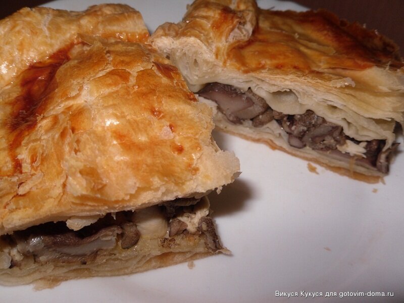Ингредиенты: ✓ Слоенное дрожжевое тесто-1 пачка (500 граммовая) ✓ Фарш индейки, либо можно любой другой фарш-350 грамм ✓ Шампиньоны-350 грамм ✓ Луковица-1 штука ✓ Масло сливочное-60 грамм ✓ Майонез-30 грамм ✓ Соль, перец ✓ Маргарин-30 грамм Рецепт приготовления Лук почистить и вместе с грибами порезать. Затем на сливочном масле обжарить нарезанные грибы и лук в течение 5 минут. Добавить майонез, соль, перец, перемешать и жарить на среднем огне еще 3 минуты. Отдельно обжарить фарш птицы. Смешать фарш с обжаренными грибами. Тесто разморозить, раскатать в тонкий пласт. Форму для запекания смазать маргарином.На дно формы выложить пласт теста, так, чтобы оно свисало за бортик формы. Выложить равномерным слоем нашу обжаренную начинку. Накрыть пирог свисающим тестом. Отправить нашу выпечку в разогретую духовку на 35 минут при температуре 190 градусов до румяного цвета. Готовый пирог подавать слегка остывшим, порезав на кусочки. Приятного Аппетита! Подписывайтесь на КАНАЛ и ставьте ла