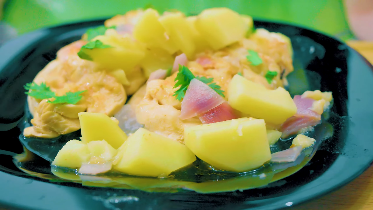 Красный перец чили по вкусу Подробное описание рецепта Сделать надрезы на грудке, поместить в глубокую посуду, посолить и вылить молоко. Затем поместить в холодильник на 20-30 минут. Готовим соус. Соевый соус смешать с перцем чили, выдавить чеснок, поперчить, перемешать. Нарезать яблоко, картофель, лук. Дно сковороды смазать растительным маслом, поместить грудку. В каждый надрез грудки засунуть кусочек резанного яблока. За