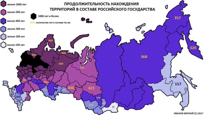 Продолжительность нахождения в составе российского государства