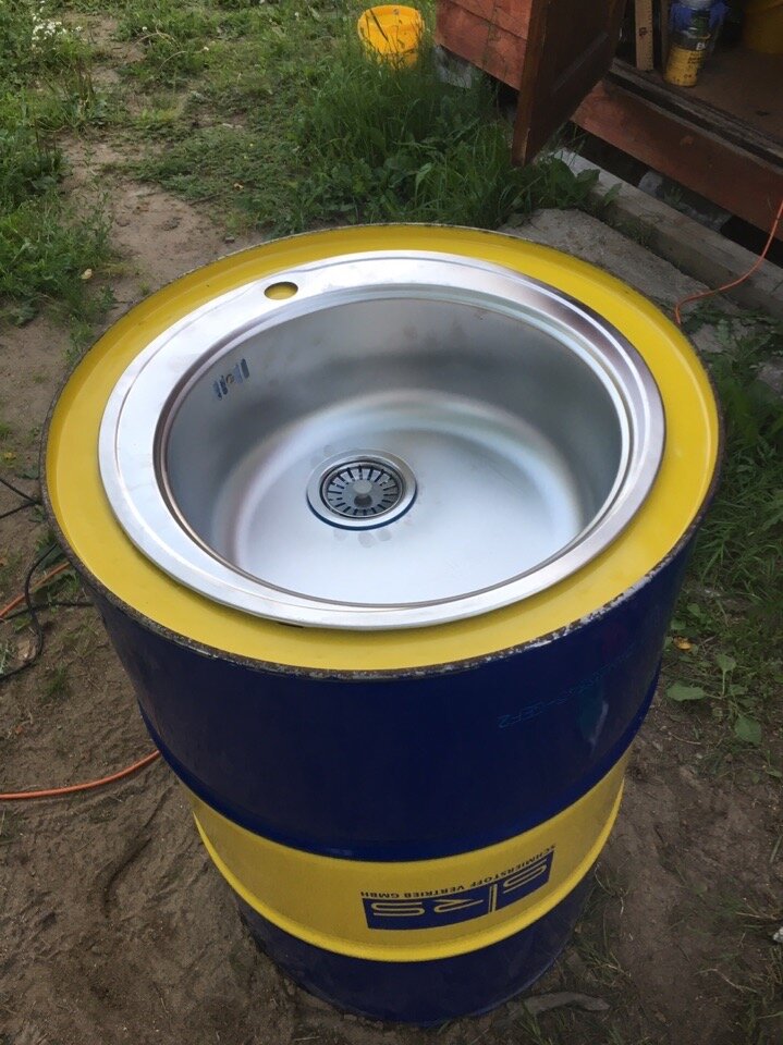Мои друзья из автосервиса решили заменить рукомойник на новый и попросили меня помочь в изготовлении креативного умывальника. Вот что из этого вышло. Рад приветствовать вас, дорогие читатели, на своём блоге! Статья создана совместно с моими друзьями из автосервиса, которые ведут блог "Заметки автомеханика". Первоначально мы не могли определиться какой именно умывальник делать. Подсмотрев идеи умывальников в интернете остановились на двух вариантах: Начать было решено с малого, а именно сделать первый умывальник из 200 литровой бочки т.к. пустых бочек в автосервисе было достаточно, а ненужной коробки передач небыло. Комплект для раковины приобрели за 450 рублей. В автосервисе выбрали наиболее симпатичную бочку, отмыли ее и нанесли разметку под раковину. Не забывайте обрабатывать края от заусенцев! Поцарапать руку проще простого! После примерки раковины нанесли метки под крепление умывальника. Собрали и установили раковину в сборе в бочку. С задней стороны бочки сделали небольшую дверцу