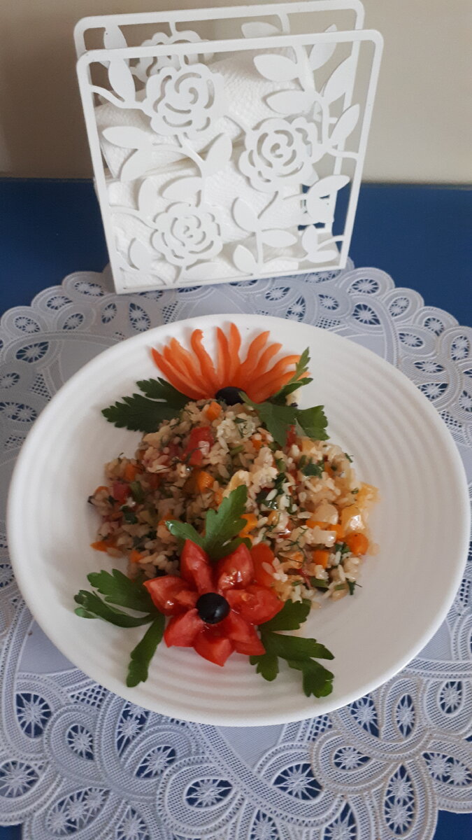 Когда я говорю знакомым, что приготовила сатараж, многие думают "Вау, а что это?". На самом деле это рис с овощами, но правильно приготовить дано не каждому, так как часто рис с овощами превращается в кашу с овощами. Хочу рассказать принцип приготовления, а именно, как приготовить рис с овощами, чтобы при этом рис остался рассыпчатым. Какие нужны продукты? Жарим все в такой последовательности: сначала жарим лук, потом добавляем морковь, через 5 минут добавляем перец болгарский, баклажаны и помидоры. Все нарезаем мелкими кубиками. Добавляем армянский перец чили (если любите острое) жарим 2-3 минуты, далее добавляем полстакана промытого белого риса и жарим еще 3 минуты. Солим, перец черный добавляем, и стакан воды. Мешаем. Очень важно: соотношение риса и воды 1 к 2, то есть на полстакана риса, стакан воды. Пробуем на вкус, как закипит переключаем конфорку на слабый огонь, закрываем крышкой и еще 15 минут готовим не мешая. Важно, именно в эти 15 минут не мешать, так как рис превратитс