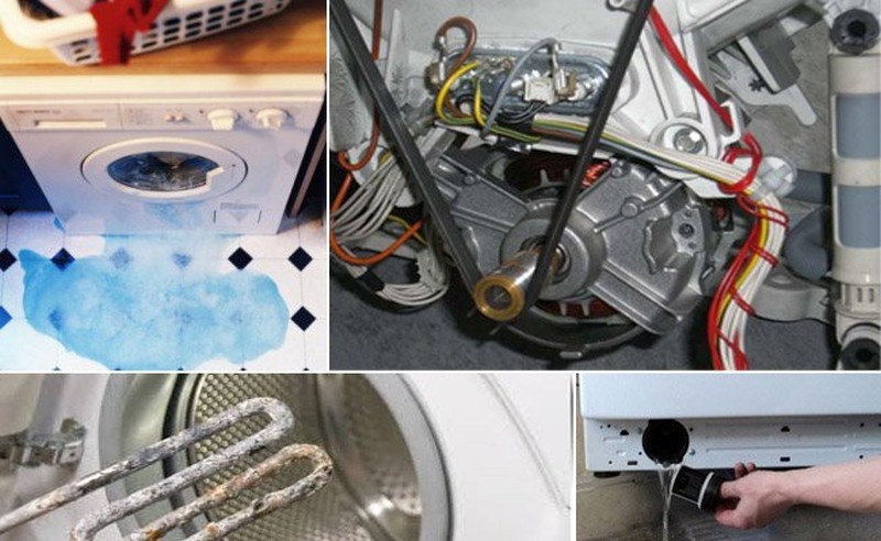 Неисправности стиральных машин часто происходят при засоре, из-за чего требуется частичная разборка аппарата. Вторая причина неисправности – отрыв рукоятки люка. Пользователь, прилагая много сил, чтобы открыть люк барабана, ломает элементы управления, срывает другие части – манжеты, защитные корпусы. Еще одна из распространенных причин неисправностей – использование в большом количестве порошка или мыла. Происходит обволакивание элемента, он перегревается и даже происходит взрыв. В таких случаях выполняют капитальный ремонт стиральных машин, а не просто замену тэна. Часто машина ломается при перегрузках или неверной загрузке одежды в барабан. При вращении и отжиме белья в этой камере, стиральная машина прыгает. У лобовых изделий могут быть нарушения герметичности, жидкость из бака попадает посредством сальника в узел подшипников, из-за этой детали портятся, и машина гремит. У вертикальных изделий гнутся оси. Ремонт обходится дорого: возможно понадобится замена барабана и бака. Кром