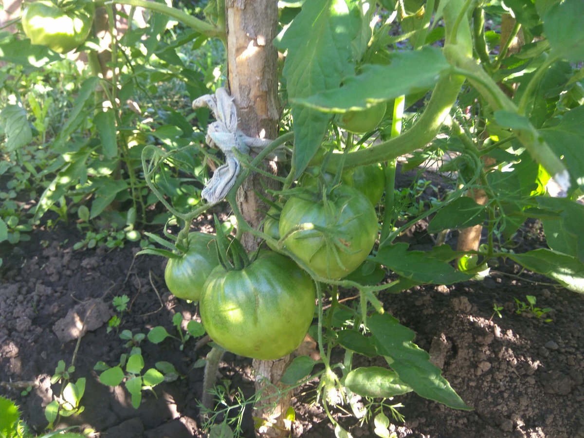 Зрелое лето - пора главного сбора овощей в открытом грунте. Огурцы поступают с грядки каждый день, поспевают помидоры. И конечно же, - ранний картофель. На созревание помидоров хорошо сказывается удаление пасынков. Удаляют верхушки плодоносящих побегов и лишние цветки, из которых все равно настоящих плодов не получить. В случае внезапного похолодания необходима защита гряд от слишком свежего воздуха и от тяжелой росы. Натянутая на каркас пленка вполне может защитить растения. фото Алсу Зиганьшиной