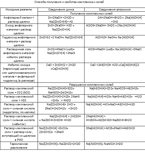 Сегодня мы решим 34 задачу, в химизме которой активно участвуют комплексные соли. Поскольку, как уже отмечала, правильный выбор реакций – лимитирующая стадия при решении химических задач, привожу сводную таблицу по способам получения и свойствам комплексных солей.