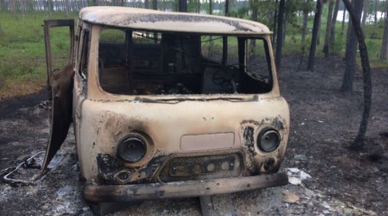 Два человека с ожогами доставлены в Ноябрьскую ЦГБ. У одного из пострадавших 30% ожогов первой степени, второй в крайне тяжелом состоянии в реанимации с ожогами второй и третьей степени. Предварительная версия происшествия — взрыв газового баллона в автомобиле УАЗ в окрестностях Вынгапуровского микрорайона. Фото из пресс-службы МЧС РФ по ЯНАО.