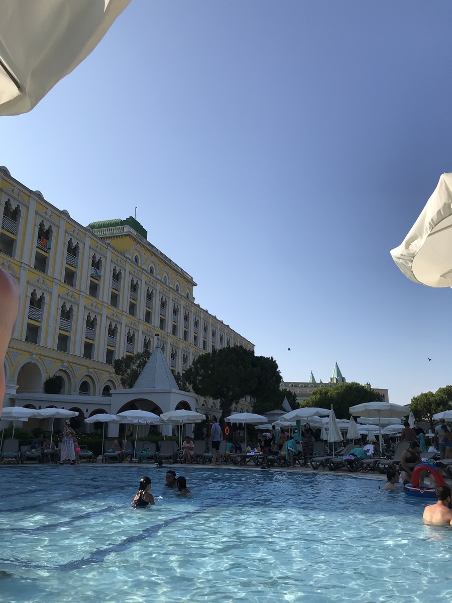 Kremlin Palace, он же бывший PGS Kremlin и WOW Kremlin (что-то такое). Начну с того, что я ни разу не летала в Турцию. Мы как-то решили стороной обходить подобный отдых, но тут так захотелось, так потянуло просто поваляться, потюленить, покупаться. Что решили посмотреть отдых в Турции. И когда мы открыли трип эдвайзер и букинг и увидели эту чудо-гостиницу - мы обомлели от нее 😂 хорошие отзывы, относительно доступная цена и при этом 5 звезд - думать было нечего. Мы не относимся к выпивающим, поэтому система All Inclusive и Ultra All Inclusive нам не очень подходит, однако, на данный период решили взять UAI и не заморачиваться. По факту я попробовала сегодня коктейль Мохито и он был ужасен. Итак, мы прилетели рано утром рейсом авиакомпании azur. Огромный боинг и, видимо, опытный пилот равно шикарный полет. Не трясло, не дергало, садился и взлетал роскошно. Однако, стюардессы были неприветливыми и очень апатичными, что несколько смазало картину. В гостиницу мы приехали около 8-9 утра. К