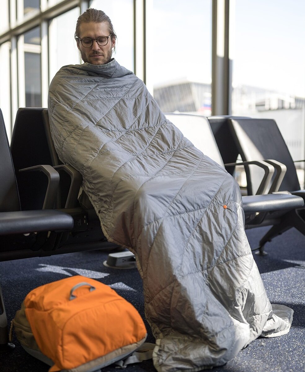 Есть правда в утверждении, что аэропорт/самолет - одно из самых неудобных мест для сна. Причин тому много: положение тела, отсутствие удобной пуховой подушки или одеяла. В общем, спать во время путешествий сложно ... Но у парней из Гравелла есть способ сделать такой сон гораздо удобнее. Layover - одеяло, созданное специально для путешествий. Его конструкция превосходит те крошечные одеяла, которые нам раздают в самолёте. Layover просто окутывает тело своим коконоподобным дизайном. Layover изготовлен из дышащих материалов и может согреть во время прохладного полета. В отличие от традиционных плоских, прямоугольных одеял, в дизайне Layover предусмотрены карманы и сумки для рук, ног и даже таких вещей как паспорт или билет. Очевидный плюс одеяла - его можно упаковать в компактную форму. Оно легко поместится в чемодан или даже может быть привязано к рюкзаку. Истинная магия Layover в его универсальности. Оно может служить и ковриком, который можно расстелить на газоне или на пляже, И одея