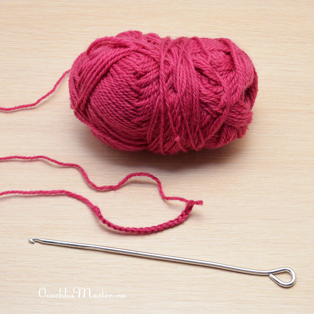 Всем добрый день. Сегодня хочу рассказать еще об одном виде вязания. Это своего рода такой микс из вязания крючком и вязания спицами. Тунисское вязание выполняется с помощью длинного крючка, одинакового по всей длине (похож на спицу для вязания). Такой крючок на конце имеет шарик или фиксатор, чтобы петли не соскакивали во время работы. Работа всегда выполняется по лицевой стороне, то есть полотно в процессе работы не поворачивается. Поэтому ряды иногда в этом вязании называют "прямыми" (справа налево) и "обратными" (слева направо). Я буду вязать образец, поэтому взяла короткий крючок. В продаже также можно найти крючки похожие на спицы с леской. Итак. Базовый узор или простое тунисское вязание. Набираю цепочку из 20 воздушных петель. Далее крючок ввожу в петли цепочки и вытягиваю петельки, так делаю до конца ряда. Но можно на крючок набрать петли как на спицу. В этом случае петли набираются за один прием. Петли набраны, дальше вяжу слева направо. Фото № 1. В начале вязания каждо