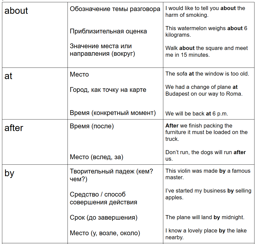 Предлоги в Английском языке
