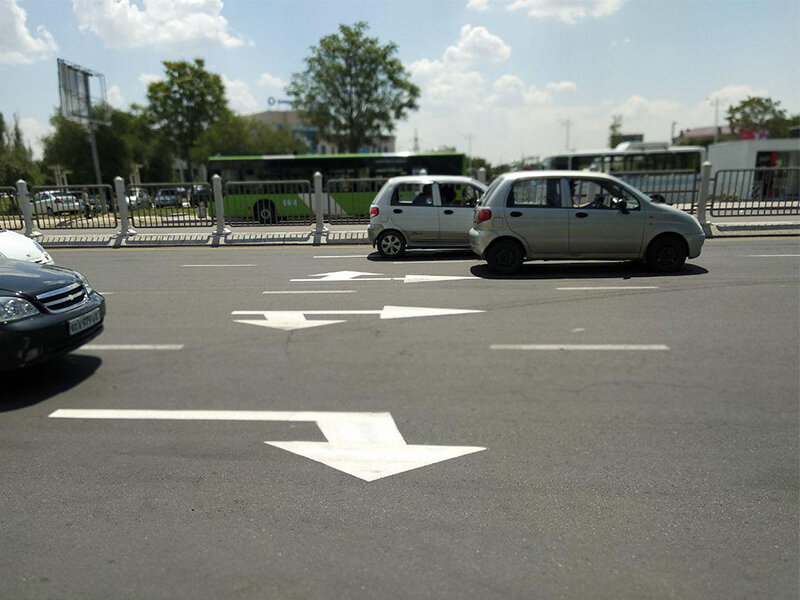 В Ташкенте начались тестовые испытания краски для дорожной разметки китайского и российского производства