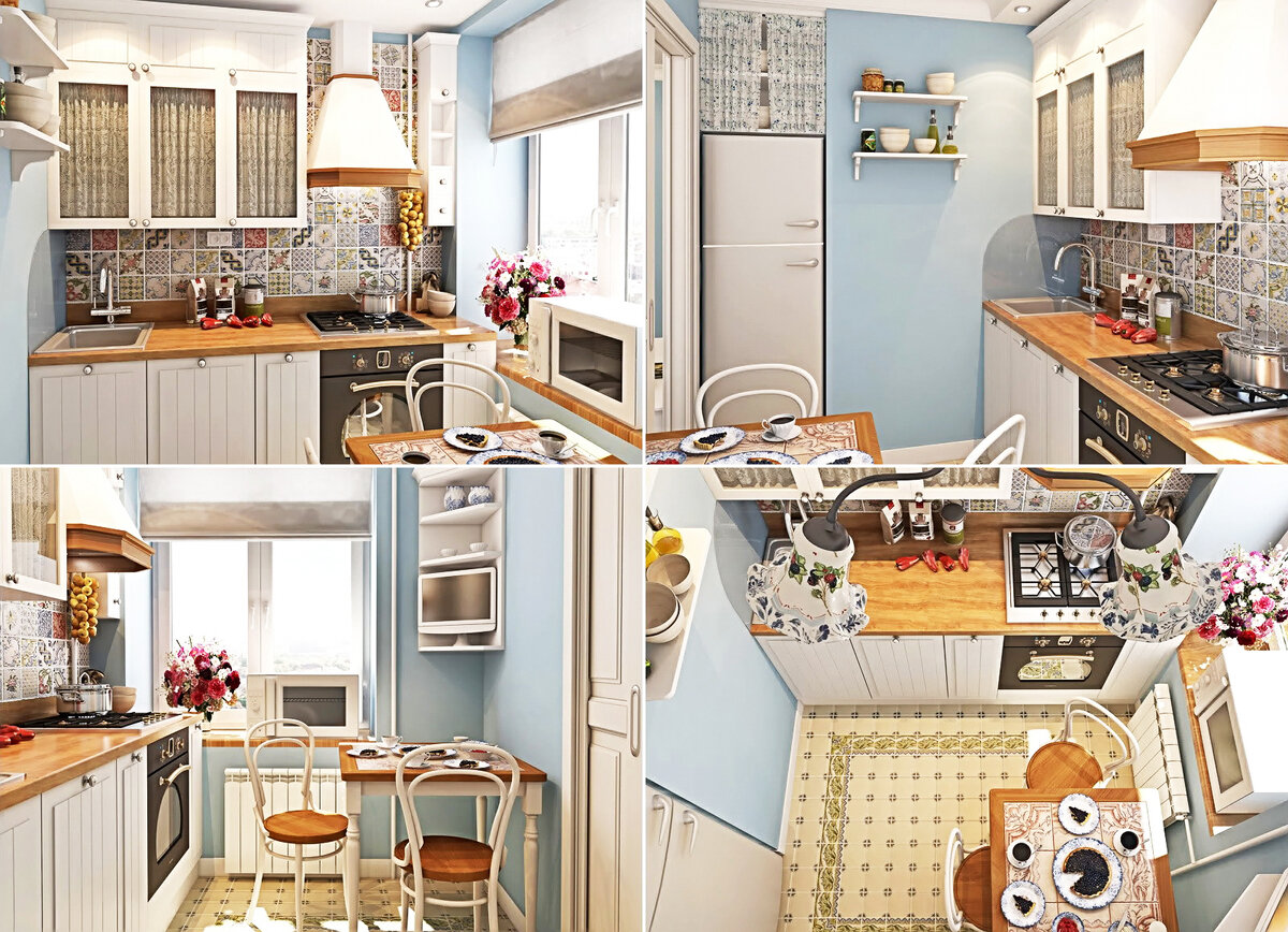 Когда мы живём в маленькой квартире, то естественно и кухня имеет не большие габариты. Для кого - то это не проблема, но чаще всего это может доставить некоторые неудобства. Поэтому первым делом мы хотим что – то изменить в данном интерьере, чтобы в итоге получилось комфортно и уютно. Так как каждая хозяйка хочет, чтобы её главное пространство было не только красивым, но и довольно комфортным для приготовления пищи. Прежде чем начинать перепланировку данного помещения, в первую очередь необходимо учитывать некоторые элементы данной комнаты. Чаще всего на кухне очень высокая влажность воздуха, от частого приготовления пищи. Поэтому для отделочных работ, лучше всего использовать материал, который имеет хорошую устойчивость к влаге. Для покрытия пола, лучшим вариантом будет покрытие, которое довольно прочное, когда на его поверхность упадёт любой кухонный предмет. Для того чтобы ваш интерьер кухни был удобным нужно правильно расположить всю бытовую технику и необходимые предметы обихода.