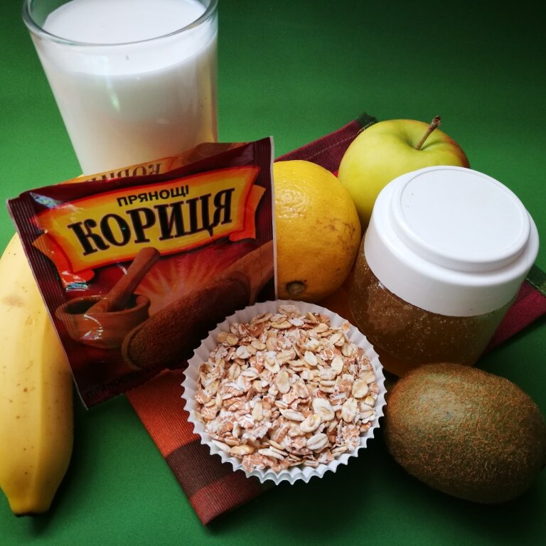 Смузи с фруктами и овсянкой может стать отличной альтернативой завтраку. А все потому, что содержит в себе необходимые витамины, микроэлементы, белки и углеводы. А еще такие напитки очень разнообразны, что позволяет выбрать идеальный рецепт для себя. Ингредиенты Список ингредиентов на 2 порции: Приготовление Кипящим молоком заливаю овсяные хлопья быстрого приготовления и оставляю под закрытой крышкой 10 минут. Банан очищаю и разрезаю на крупные кусочки. Очищаю и нарезаю кусочками яблоко. Фрукты выкладываю в чашу блендера и добавляю мед. Всыпаю молотую корицу по вкусу. Выкладываю остывшую овсянку. Взбиваю блендером до получения однородной массы. Первый слой приготовили. Для приготовления второго слоя очищаю и нарезаю кусочками киви. Выжимаю лимонный сок. Взбиваю киви до однородной массы. В стакан выкладываю слой из яблок и бананов, сверху - более жидкий слой из киви. Приятного аппетита! Подписывайтесь на наш вкусный YouTube канал Priprava Club Оставляйте комментарии, ставьте пальчик