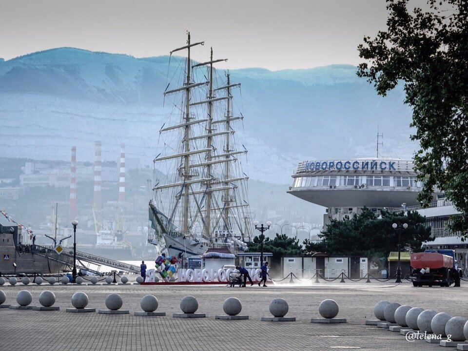 Будем ждать и встречать красивейшие парусники. Надеюсь, что в регате примут участие барки "Седов", "Крузенштерн", фрегаты "Мир", "Надежда", румынские и болгарские баркентины... Ну а пока в порт Новороссийск зашел учебный фрегат "Херсонес" (порт приписки Севастополь)