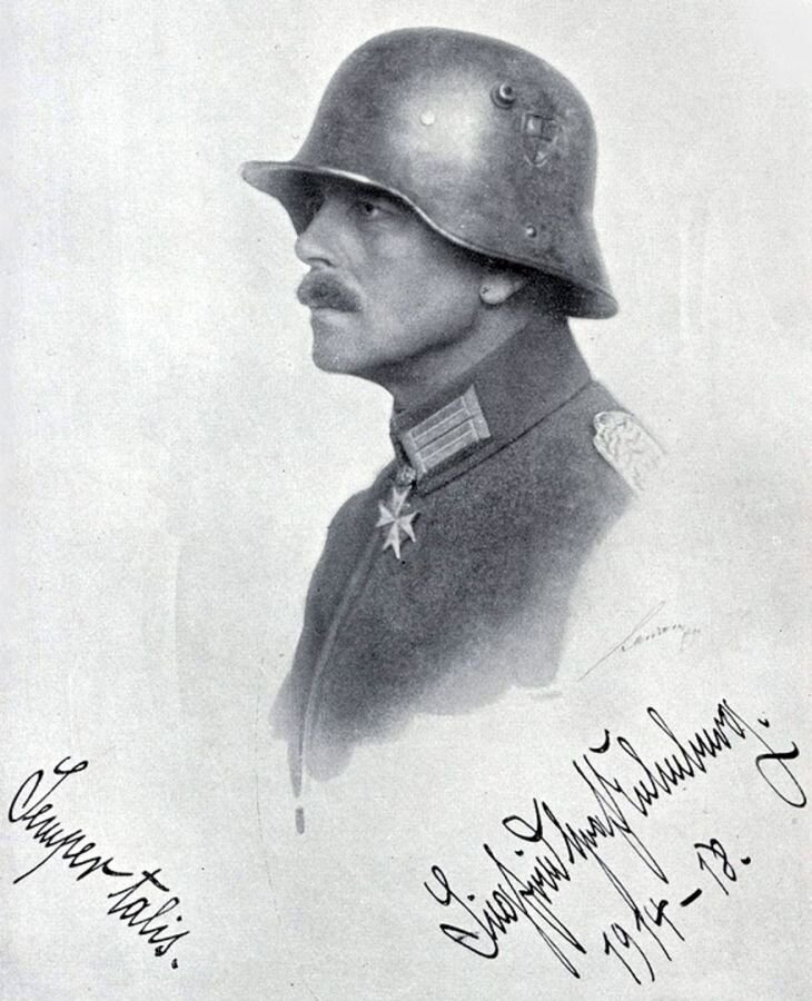 Боевое крещение довелось принять на Западном фронте, где комбат получил и свое первое ранение при осаде бельгийского города Намюр. В госпиталях пришлось проваляться больше полугода. Но весной 1915-го офицер был уже снова в строю: его полк перевели на Восточный фронт, где предстояло майское наступление в Галиции. По ходу Горлицкого прорыва граф был ранен осколком снаряда в живот, но и на этот раз выжил, вернувшись на фронт в середине осени. Его полк успел поучаствовать и в битве на Сомме в 1916-м, и в германском наступлении в Прибалтике в 1917-м, и в битве на Марне в 1918-м. Везде пруссаки, надо отдать им должное, дрались доблестно, не отставал от своих солдат и их новый командир. В общей сложности за ту войну Зигфрид Ойленбург был ранен пять раз, удостоившись специального золотого значка – уникальный случай для комполка в Германии. А в августе 1917 года личную храбрость и командирские способности графа командование рейхсвера оценило орденом Pour le Mérite («За заслуги») – высшую военную награду Пруссии до конца Первой мировой. Причем к «Голубому Максу» прилагались дубовые листья.