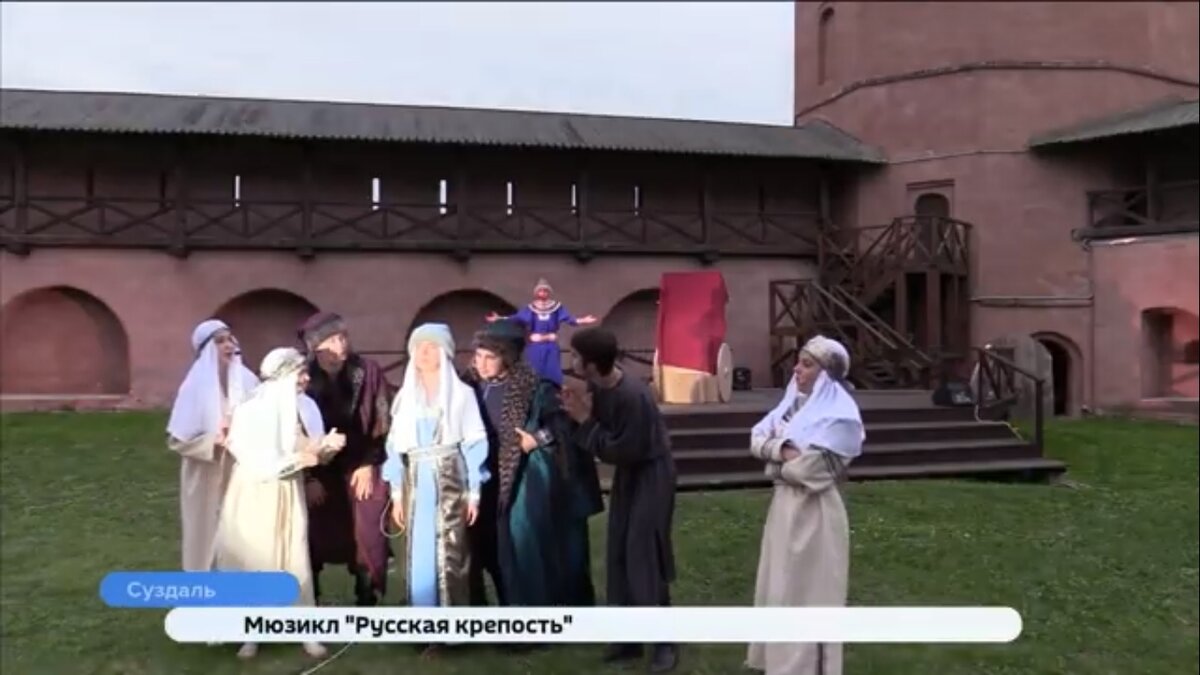 Можно будет увидеть своими глазами важнейшие события истории Руси: в Суздале поставят мюзикл «Русская крепость». Живые декорации — так Спасо-Евфимиев монастырь называют артисты поэтического театра «Знаменье». Студенты и преподаватели ВлГУ рассказывают о важнейших событиях древней Руси, переносят зрителей во времена муромских святых Петра и Февронии и Владимира Красное Солнышко. Артем Гниденко, артист: «Любое твое мимическое движение будет поймано взглядом и как-то расценено. Либо тебе зритель поверит, либо не поверит. И от этого ситуация и дело усложняются». Александра Загреднюк, ассистент кафедры ВлГУ, играет Февронию. Сама Александра поет 15 лет на клиросе и изучает жития святых. Специально для этой роли прочитала много литературы о муромской княгине. Александра Загреднюк, актриса: «Конечная цель — не просто чтобы человек поверил, а, наверное, донести нашу историю, наше духовно-историческое наследие до зрителей». Это не просто студенческая постановка. В мюзикле три новеллы: Крещение