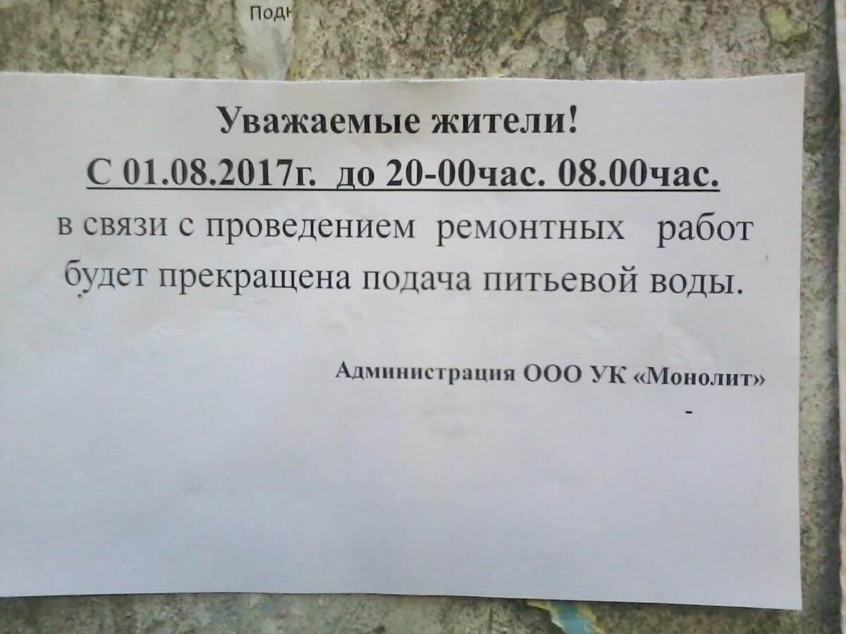 Как уже заметили некоторые читатели, я периодически веду рубрику «Орфопатруль», где выкладываю авторские фотографии забавных объявлений или ошибок. Как правило, публикую я их в постах или собираю в нарратив. Но поступали жалобы, что поскольку эти форматы – мобильные, не всех их могут посмотреть. Поэтому сегодня я соберу эти фотографии в статью, а если вы их уже видели, то знайте, что у вас не дежавю))) Фото №1 Этим прекрасным объявлением со мной поделилась моя коллега, за что ей огромная человеческая благодарность. Вообще объявления на подъездах – это просто кладезь феноменов русского языка. Так и тут: до скольких, простите, не будет воды?))) Фото №2 Фотография из того же источника. Я, конечно, всё понимаю, а после 23.00 почему нельзя-то?!))) Фото №3 А это объявление я запечатлела на работе. Видимо, у сотрудников наболело настолько, что они решили написать наиболее подробную инструкцию к двери. Не знаю, помогло именно оно или нет, но дверь действительно была закрыта.))) Фото №4 К