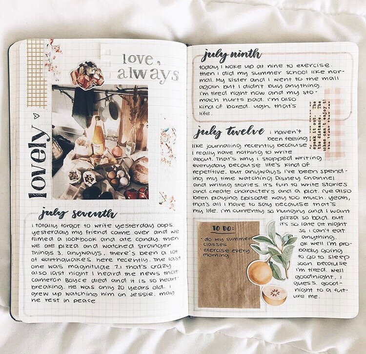 Эти развороты могут быть посвящены поездке, одному дню, событию или даже часу из вашей жизни. Главное, зарисовать или оформить этот разворот красиво, эстетично и так, чтобы он запомнился. Вы можете использовать для этого фотографии, билеты, бумагу, краски, карандаши, ручки и все, что только придет вам в голову.